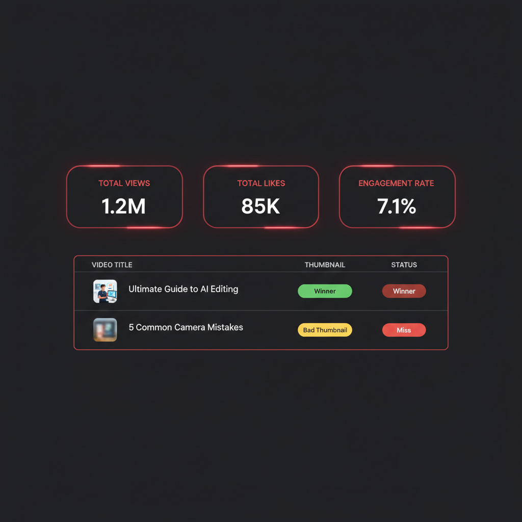 Track CTR, retention, and every metric that matters — with live monitoring, competitor intel, and instant status labels.